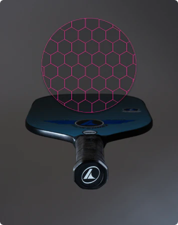 This Proprietary 7-layer carbon fiber surface coating and complex composite, including specially treated soft skin with spin-grab feature, is neatly heat-bonded to the polypropylene honeycomb core to withstand competitive play, maintain consistency and maximizes legal spin potential.